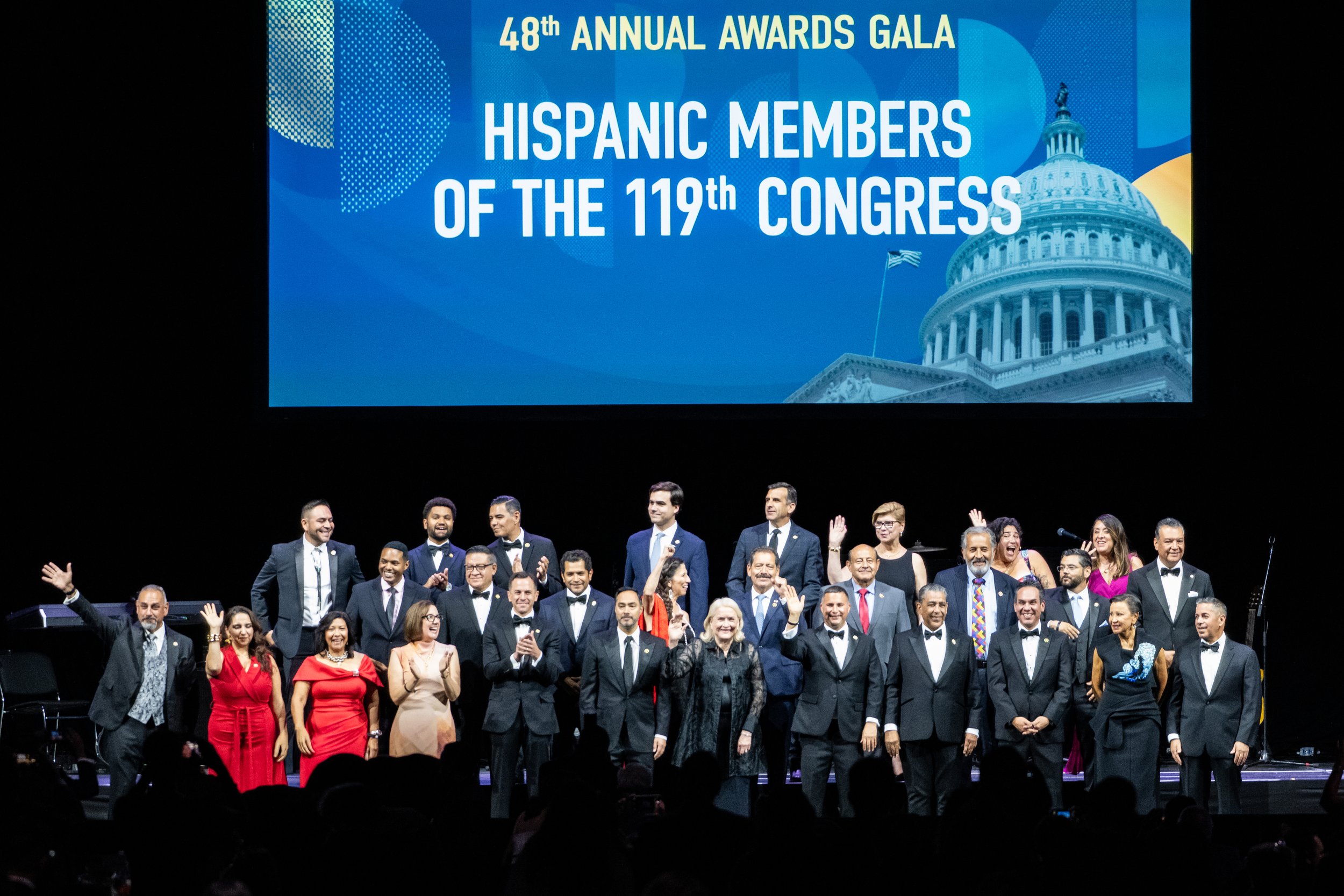 Hispanic Members of the 119th Congress gather on stage at CHCI’s 48th Annual Awards Gala.